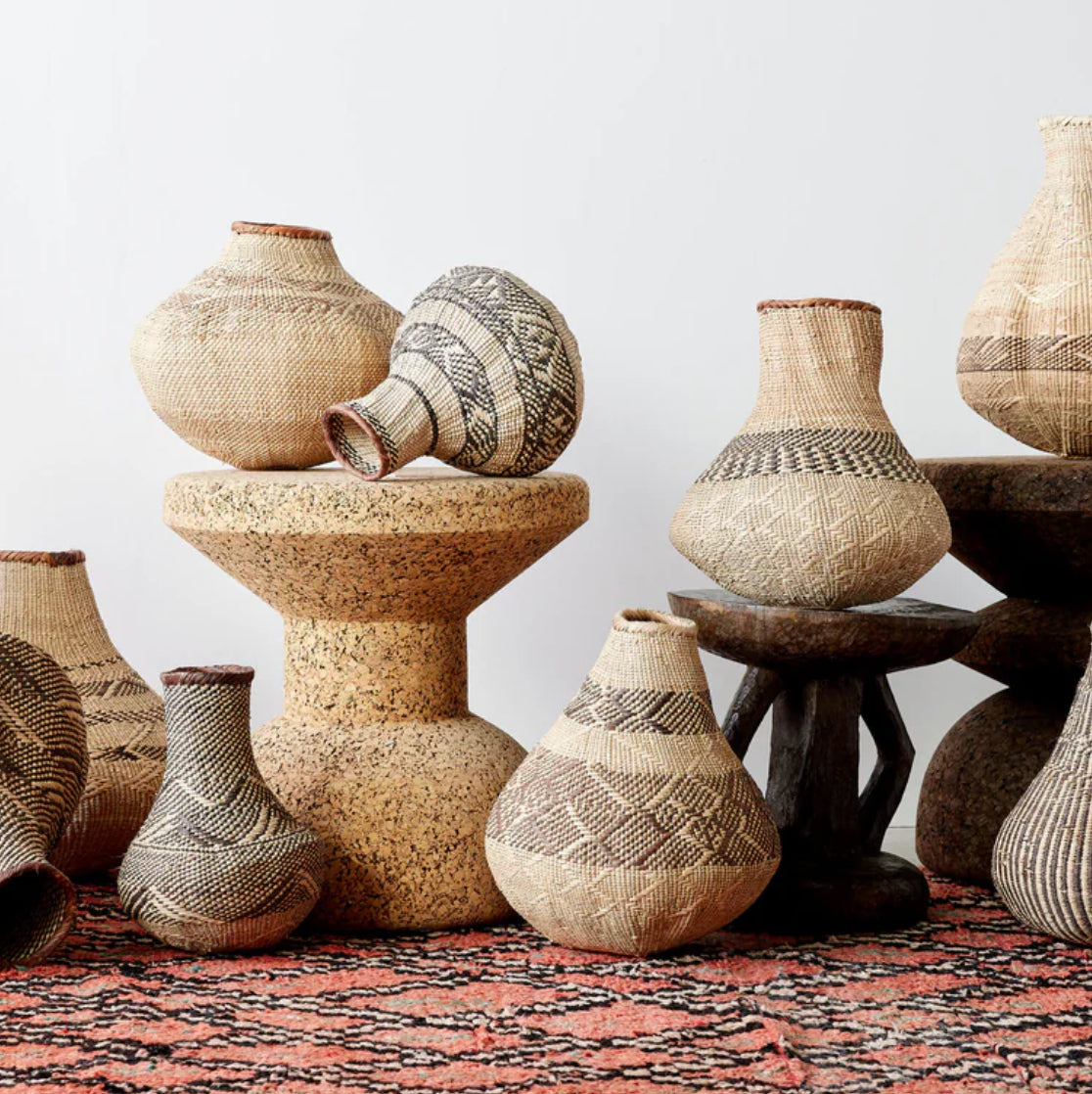 Available in a range of sizes and patterns, these baskets add texture, warmth, and visual interest to any space. Style them individually or create a curated grouping for a striking, sculptural display that feels both timeless and contemporary.